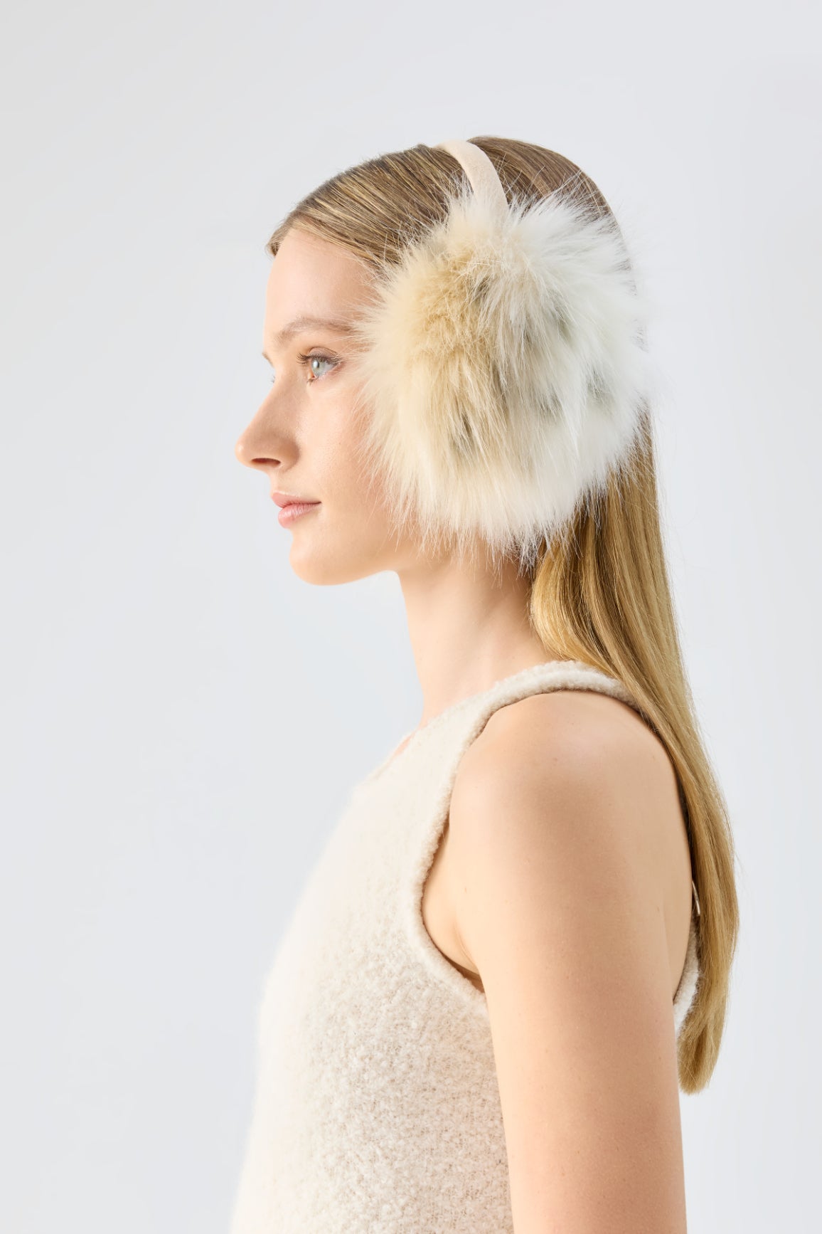 The All Ears Earmuffs feature a classic shape, crafted from luxurious faux fur in white with leopard print accents and faux suede headband. They are adjustable in length for optimal comfort when wearing.